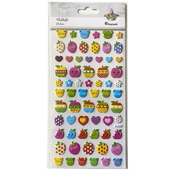 Naklejki wypukłe: głowy misia, truskawki, jabłka, serca, kwiaty - 65 sztuk. przeczytaj całość
