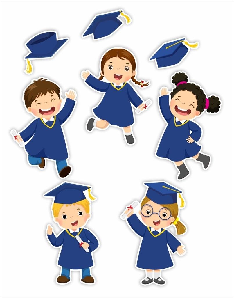Zestaw zawiera 8 elementów - wydrukowanych dwustronnie!Dekoracje są wycięte, gotowe do powieszenia.Zestaw składa się z 5 dzieci i 3 biretami - idealne na uroczystość zakończenia roku w szkole lub przedszkolu.Świetnie sprawdzi się jako ozdoba na okno, w szczególności w szkolnych salach, a także...