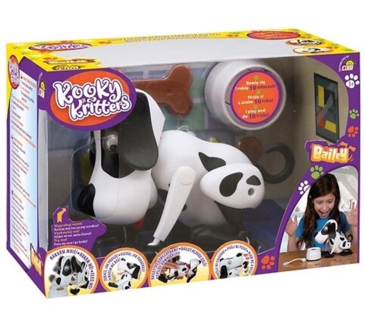 Jest przezabawny! Uwielbia radosną zabawę i daje mnóstwo radości!Piesek Kooky Kritters Bailey wygląda jak z kreskówki. Piesek ma 10 funkcji! Je ze swojej magicznej miski, w której znika jedzonko. Daj mu jego trzy ulubione przysmaki, a zobaczysz jak znikają w jego magicznej misce. Piesek szczeka,...