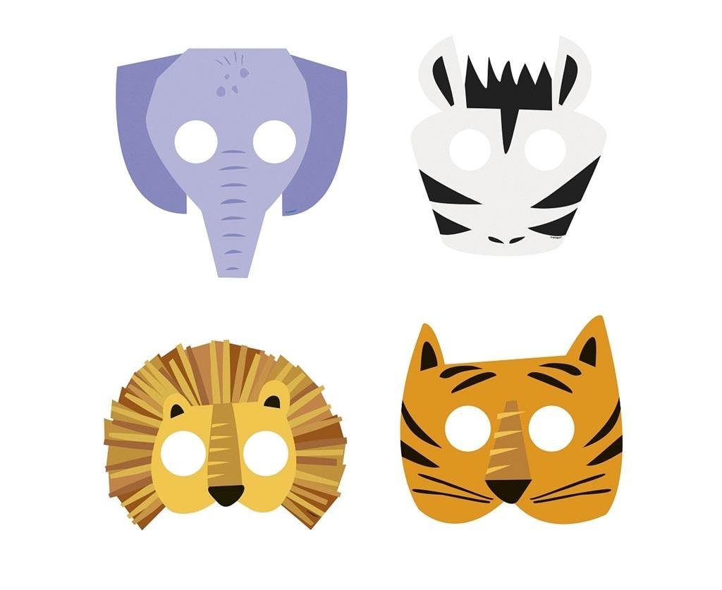 Maski papierowe Animal Safari 4 wzory 8 szt.
