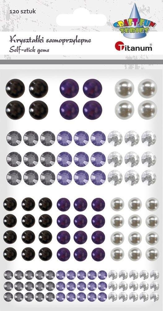 Kryształki i perełki samoprzylepne okrągłe mix perełki 11,5/8mm, kryształki 9,5/6,5mm kolory: perełki - ciemnobrązowy, fioletowy, srebrny, kryształki - dymny, wrzosowy, srebrny 120szt. przeczytaj całość