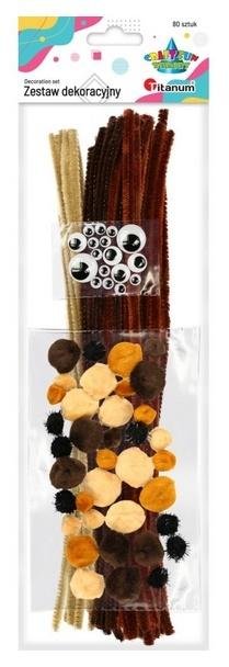 Zestaw druciki, pompony, oczka brązowy 80szt