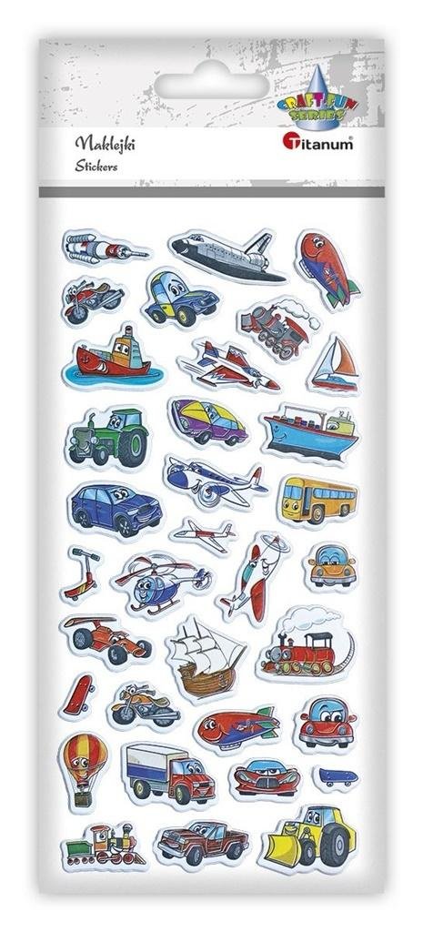 Naklejki wypukłe miękkie pojazdy jeżdżące, latające, pływające 34szt. przeczytaj całość