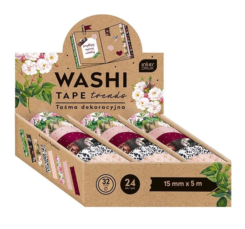 Opakowanie zbiorcze 24 sztuki.Taśma dekoracyjna, mix, 15mmx5m. przeczytaj całość