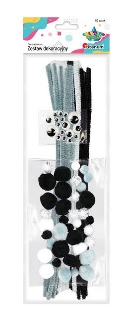 Zestaw: druciki, pompony, oczka 80szt. szary. przeczytaj całość