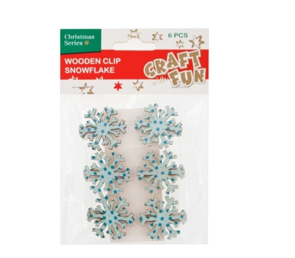 Ozdoba dek drewniane klamerki płatki śniegu 6szt