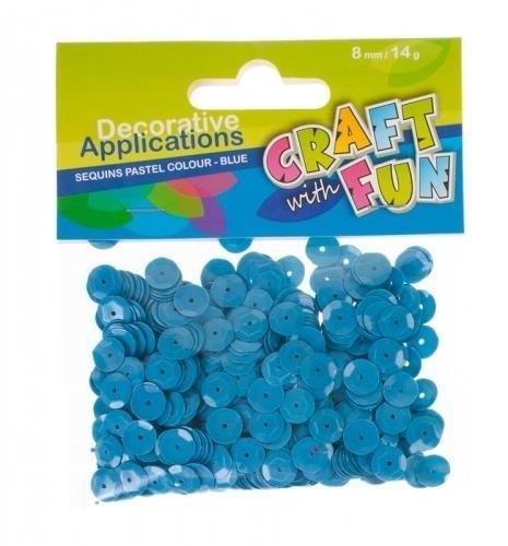 Cekiny metaliczne w niebieskim kolorze. W opakowaniu 14 g.Przy pomocy Cekinów Craft With Fun można zaprojektować własne ozdoby lub dekoracje. Idealne do wykonywania wszelkich prac dekoratorskich, jak również do zabaw plastycznych, do wzbogacenia ozdób. Używaj tych produktów w połączeniu z innymi...
