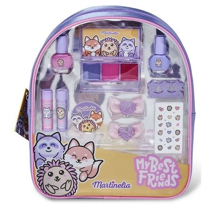 Plecak z kosmetykami dla dzieci zawiera:2 lakiery do paznokci,2 balsamy do ust,1 separator,naklejki,1 lakier do paznokci,2 gumki do włosów,3 błyszczyki,aplikator. przeczytaj całość