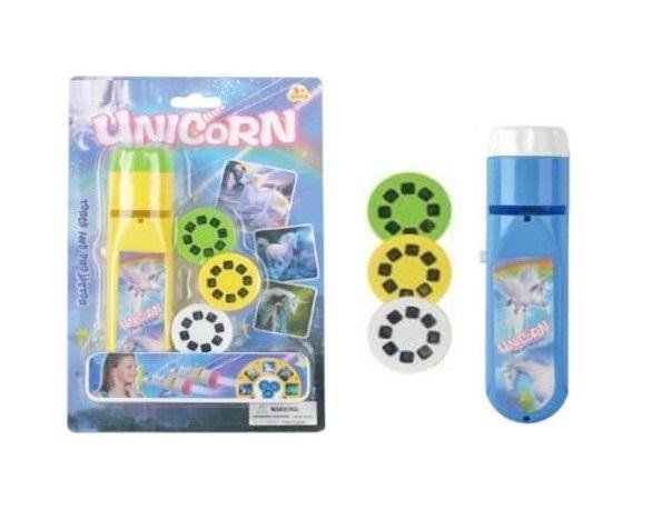 Latarka i projektor w jednym. Lekka poręczna latereczka przyda się każdemu małemu poszukiwaczowi przygód. Gdy będzie chciał pooglądać zwierzęta wystarczy w latarkę włożyć kółeczko ze slajdami zwierząt. Są to 24 zdjęcia jednorożców. W zestawie: 3 x 8 zdjęć, latarka. Zabawka działa na baretie typu AA. Baterie nie są załączone do zabawki. Podane wymiary są wymiarami opakowania.