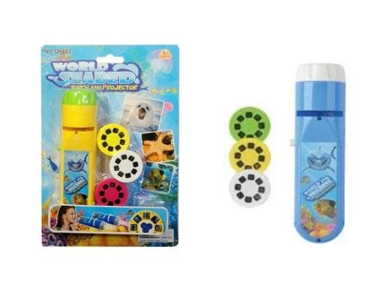 Latarka i projektor w jednym. Lekka poręczna latereczka przyda się każdemu małemu poszukiwaczowi przygód. Gdy będzie chciał pooglądać zwierzęta wystarczy w latarkę włożyć kółeczko ze slajdami zwierząt. Są to 24 zdjęcia zwierząt morskich. W zestawie: 3 x 8 zdjęć, latarka. Zabawka działa na baretie...