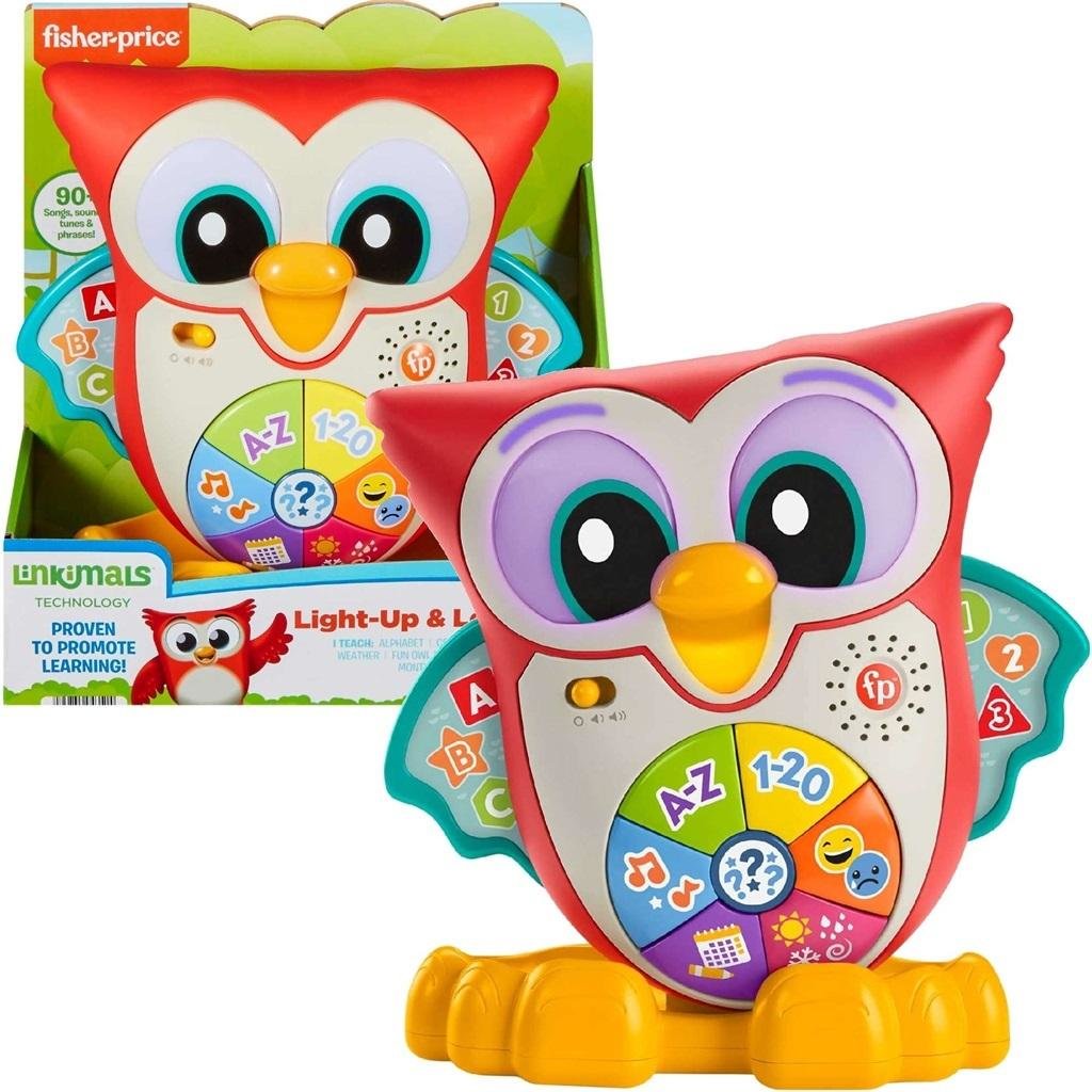 Baw się i ucz z Interaktywną Sową Linkimals od Fisher-Price! Naciskaj przyciski na brzuszku sówki i bujaj ją z boku na bok, aby zobaczyć kolorowe światełka i usłyszeć ponad 90 aktywacji - piosenki, dźwięki i wypowiedzi - które wprowadzają malucha w świat literek, liczenia od 1 do 20, pogody,...