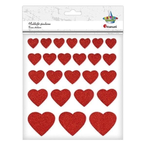Naklejki piankowe - brokatowe serca: 20 x 18, 24 x 22, 29 x 25, 37 x 32, 49 x 44 mm, czerwone, 25 szt. przeczytaj całość