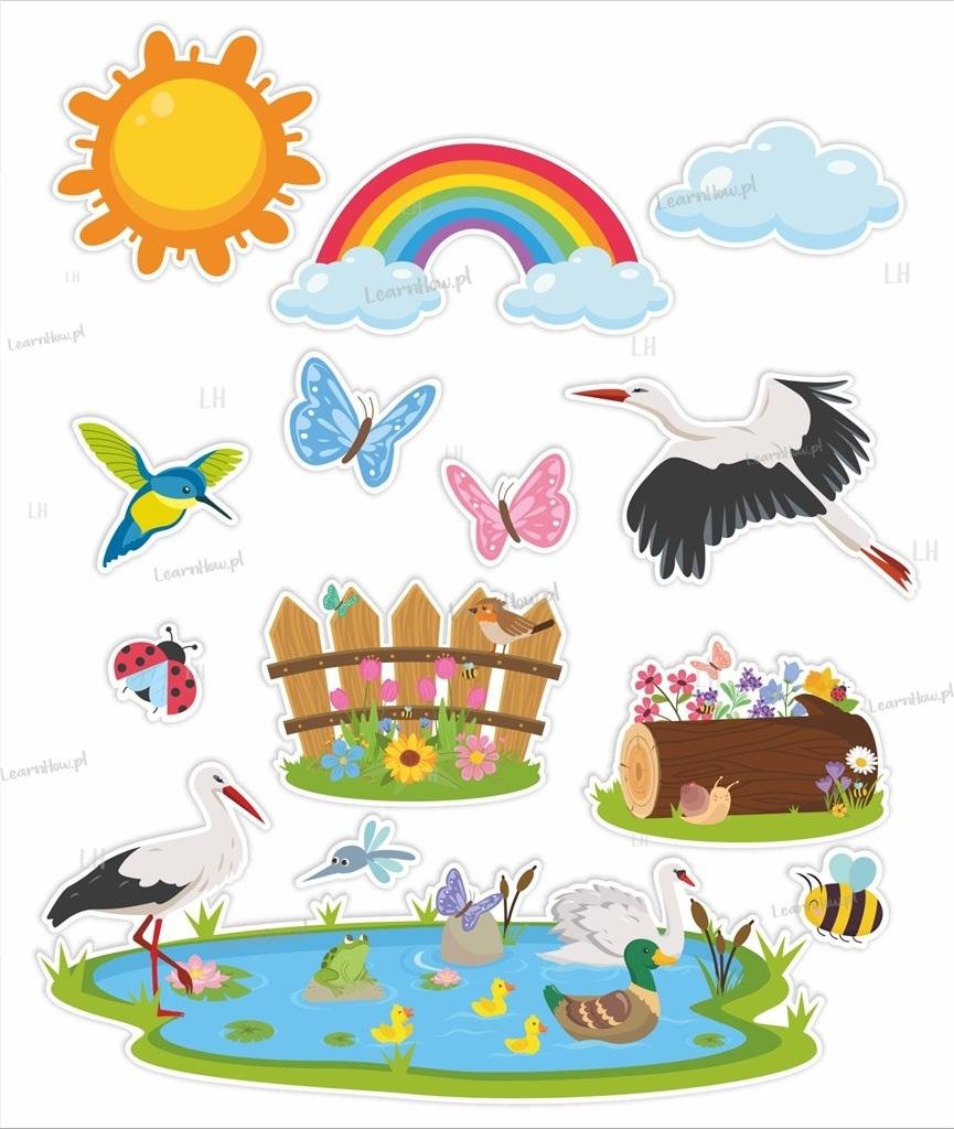 Zestaw zawiera 13 elementów - dekoracje są wycięte, gotowe do powieszenia!Zestaw krajobrazowy składa się z 13 elementów - pełny wiosennych kolorów, kwiatów, natury i zwierząt!Idealne do wiosennej dekoracji szkoły i przedszkola.Świetnie sprawdzi się jako ozdoba na okno - w szczególności w...