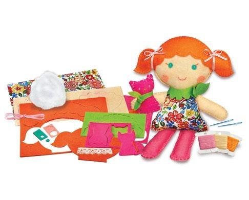 Tylko z zestawem Zrób to sam - Lalka z kotkiem szycie staje się takie proste. Opakowanie zawiera powycinane filcowe kształty z wytłoczonymi otworami, a plastikowa igła pozwala na bezpieczne szycie. Jest on wprost idealny dla osób rozpoczynających swoją przygodę z szyciem.