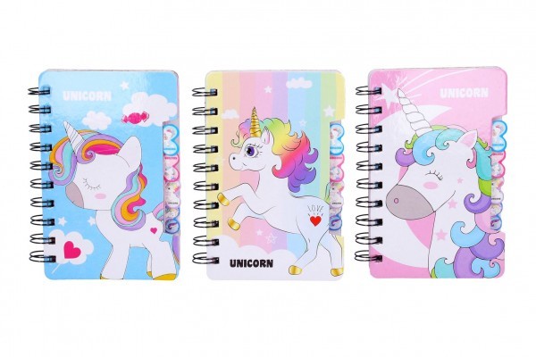 Poznámkový blok/notes Jednorožec kroužkový linkovaný 57 stran 3 barvy 10x14cm v sáčku