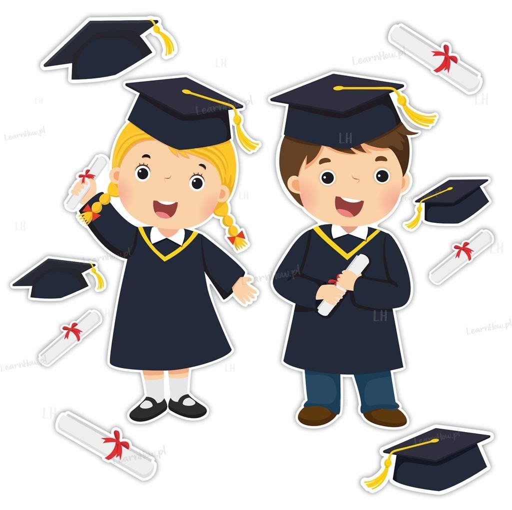 Zestaw zawiera 10 dużych elementów - Dekoracje są wycięte, gotowe do powieszenia.Zestaw składa się z 2x dużych dzieci, 4x birety, 4x "dyplomy" - idealne na uroczystość zakończenia roku w szkole lub przedszkolu.Świetnie sprawdzi się jako ozdoba na okno, w szczególności w szkolnych salach, a także...