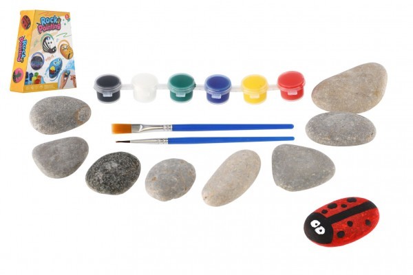 Malování na kameny/oblázky s barvami se štětci v krabičce 14x15,5x4,5cm