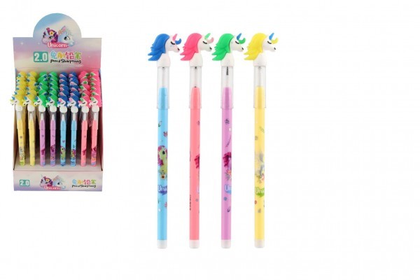 - Wzór z motywem jednorożca na plastikowym korpusie ołówka.