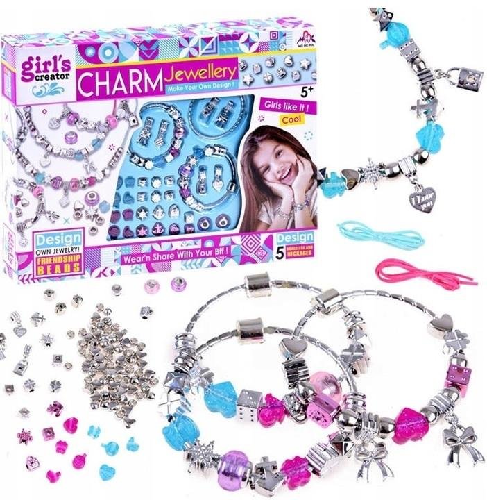 Zestaw bransoletek zawiera: - 3 bransoletki, - mnóstwo charmsów i koralików, - 2 rzemyki, - dodatkowe zapięcia. Samodzielne tworzenie bransoletek i naszyjników rozwija nie tylko kreatywność i koncentrację ale także motorykę i cierpliwość! przeczytaj całość