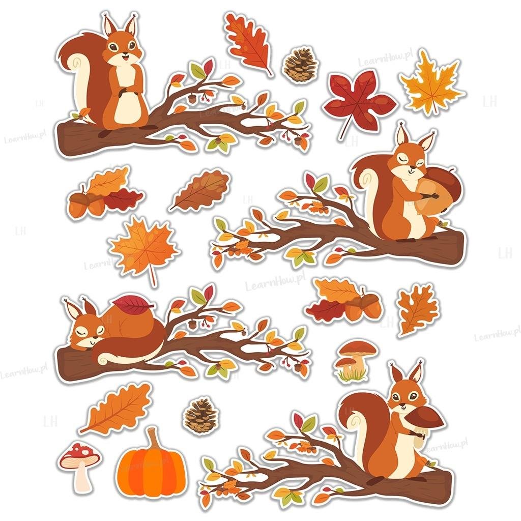 Dekoracje jesienne - wiewiórki na gałęzi A3 14szt