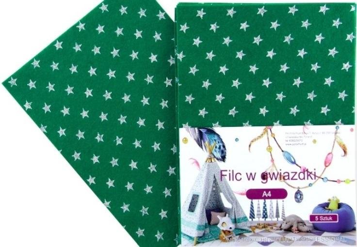 Filc A4 w gwiazdki zielony 5szt