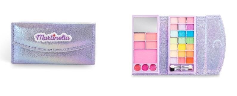 Zestaw kosmetyków do makijażu dla dzieci zawiera: 21 cieni do powiek, 3 błyszczyki do ust, 5 sztuk różu i bronzera, 2 aplikatory. przeczytaj całość