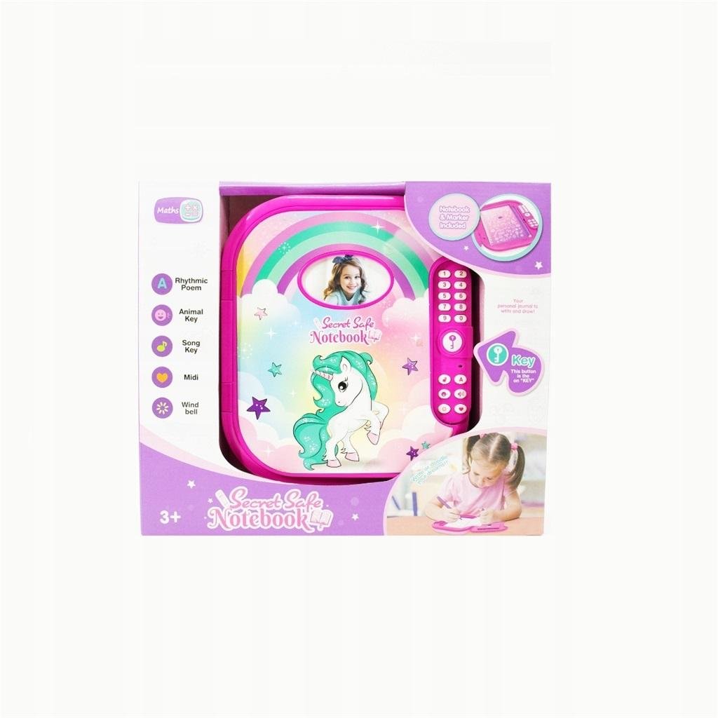 Sekretny pamiętnik z dźwiękiem otwierany kodem.W zestawie znajduje się pamiętnik z jednorożcem. Zeszycik z pisakiem do zapisywania swoich sekretów. Pamiętnik posiada funkcję dźwięku oraz światła, blokadę na kod, 6 różnych trybów dźwięku. przeczytaj całość