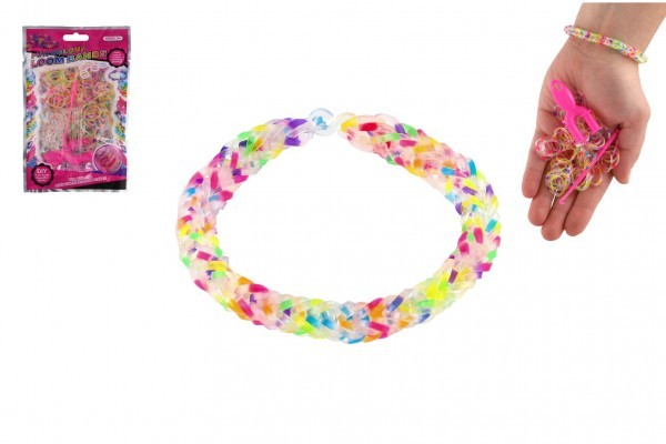 Zrób bransoletkę w ulubionej kombinacji kolorów lub podaruj ją koledze czy koleżance. Wyobraźnia nie zna granic! Stwórz ozdobę taką, jaką będziesz mieć tylko Ty lub osoba, na której Ci zależy! Wszystko potrzebne do wykonania znajdziesz w opakowaniu. Zawartość: 200 silikonowych gumek w różnych kolorach, narzędzie do przewlekania, haczyk i 10 zapięć. Wymiary opakowania: 10 x 16 cm Dla dzieci od 3 lat