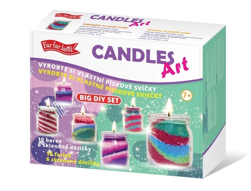 6x skleněná dózička, 10 barev přírodní voskové hmoty 45g, jemná vůně přírodního oleje, 6x knot na svíčky przeczytaj całość