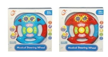 Kolorowa kierownica na baterie z przyciskami. Wydaje dźwięki i świeci kolorowymi światełkami. Kierownica zasilana jest bateriami typu AA. Brak baterii w zestawie. Produkt przeznaczony dla dzieci powyżej 3 lat. Produkt występuje w kilku wersjach kolorystycznych wybieranych losowo, cena dotyczy 1 szt Produkt zapakowany w kartonowe opakowanie z okienkiem.