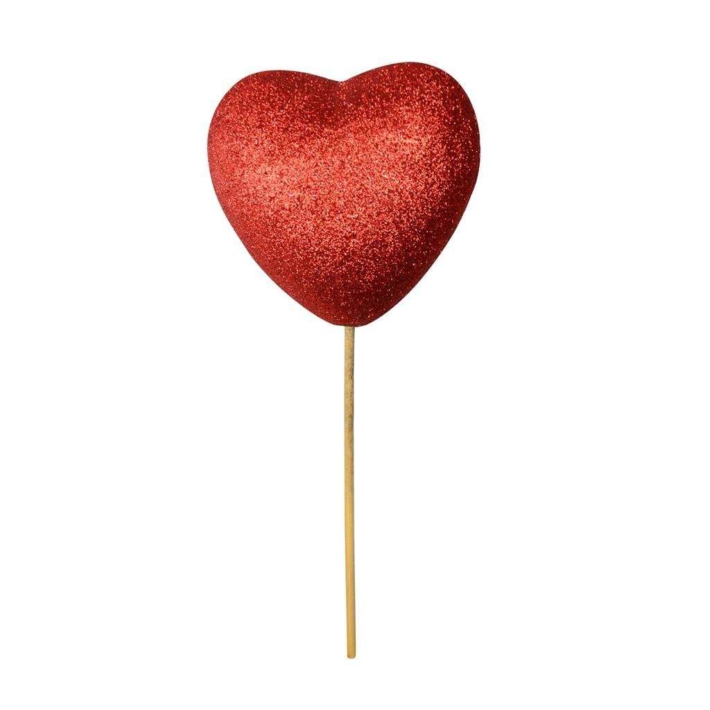 Dekoracyjne serce na patyczku. Serce w kolorze czerwonym pokryte połyskującym brokatem. Idealne jako dekoracja bukietów, koszy i kompozycji z kwiatami, upominków na ślub, rocznicę, walentynki. Rozmiar dekoracji z patyczkiem: 16 cm. przeczytaj całość