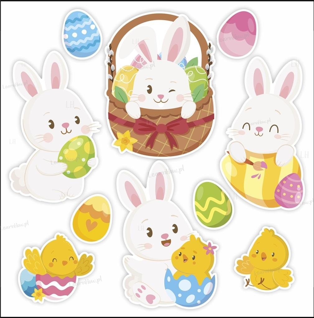 DEKORACJA - WIELKANOC - ZAJĄCZKI WIELKANOCNE 04 - DWUSTRONNE ~A4(10 elementów, dwustronna)Zestaw zawiera 10 elementów - wydrukowanych dwustronnie!Dekoracje są wycięte, gotowe do powieszenia.Zestaw składa się z 4 dużych zajączków, 4 pisanek oraz 2 kurcząt - idealny zestaw do Wielkanocnej dekoracji...