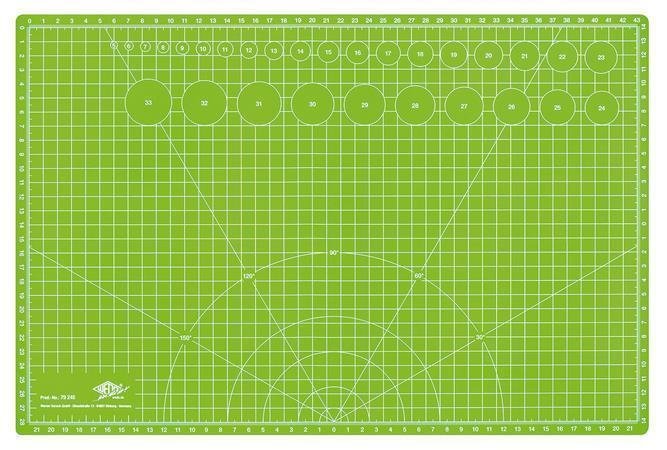 Robustní řezací podložka s potiskem z obou stran.Vlastnosti: potisk mřížky cm, úhlů a kruhy; třívrstvá konstrukce se speciálním jádrem a samozavíracím povrchem; napomáhá k přesným řezům; chrání ostrost čepele nožů; vhodné také jako psací podložka;Barva: zelenáTloušťka: 3 mmMěřítko: 43x28... przeczytaj całość