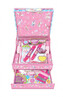 Zestaw zawiera: Mini notesik 2 długopisy z "niewidzialnym" tuszem Arkusze z kolorowymi naklejkami Naklejkę 3D Zakładkę Wstążki Zestaw zapakowany w kartonowe pudełko ze zdobieniami zamykane na magnes. Po otwarciu wysuwają się 2 szufladki, w których można umieścić akcesoria i  dodatkowe drobiazgi. przeczytaj całość