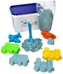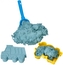 W zestawie znajdziesz 2 kg piasku i 4 foremki pojazdów z łopatką.