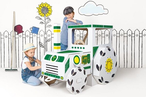 Traktor je vyrobený z 5vrstvé bílé vlnité lepenky, který lze složit a polepit samolepkami. Balení obsahuje:1 bílý traktor + sada samolepek, kterými lze traktor vyzdobit.Rozměry traktoru:123 x 69 x 90 cm.Jakost. przeczytaj całość