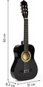 Naucz się grać na gitarze! Dziecięca gitara dla chłopców i dziewcząt została zaprojektowana tak, aby miała wszystkie cechy profesjonalnego instrumentu. Ma mostek i podstrunnicę z sześcioma strunami (3 metalowe, 3 nylonowe). Gryf ma 18 progów i jest zakończony główką z mechaniką strojącą. Długość gitary: 86 cm. Uwaga: Gitara jest dostarczana w stanie nienastrojonym z poluzowanymi strunami.