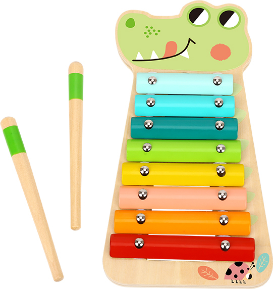 Xylofón KrokodílNa tomto xylofóne bude radosť hrať!Xylofón s motívom krokodíla zaujme vaše deti naplno. Vďaka farbám jednotlivých kláves si dieťa ľahko zapamätá jednoduché melódie. Súčasťou balenia sú aj dve paličky, vďaka ktorým môže hrať na xylofóne ako pravý hudobník.Deti si rozvíjajú zmyslové... przeczytaj całość
