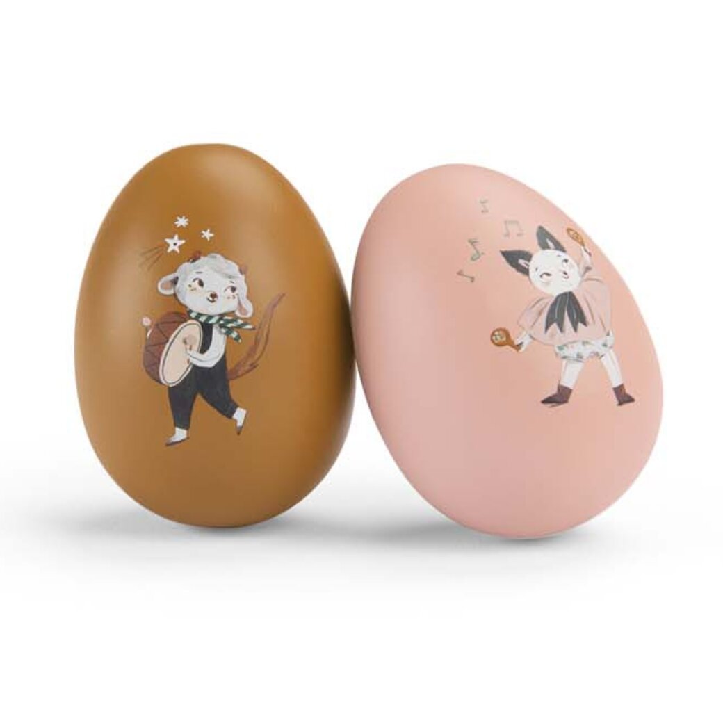Tyto roztomilé maracas z dřevěných vajíček v jemných růžových a taupe odstínech jsou zdobeny krásnými, poetickými ilustracemi z kolekce Apres la pluie, kterou navrhla Lucille Michieli. Díky ergonomické velikosti, navržené speciálně pro malé dětské ruce, jsou ideální pro první hudební experimenty...