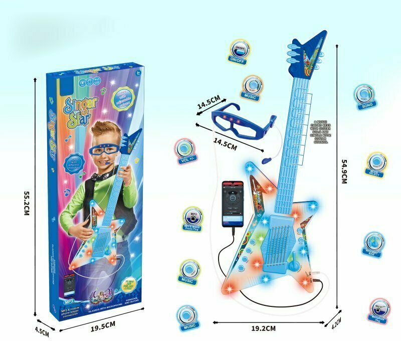 Gitara gwiazdy Rocka niebieska + okulary z mikrofonem 1009016