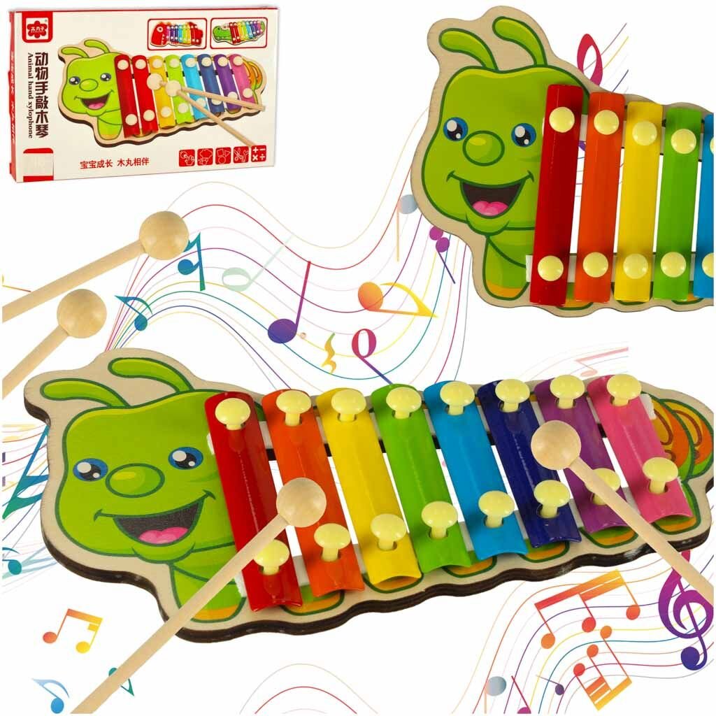 Dřevěné barevné xylofonky pro děti – housenka s paličkami