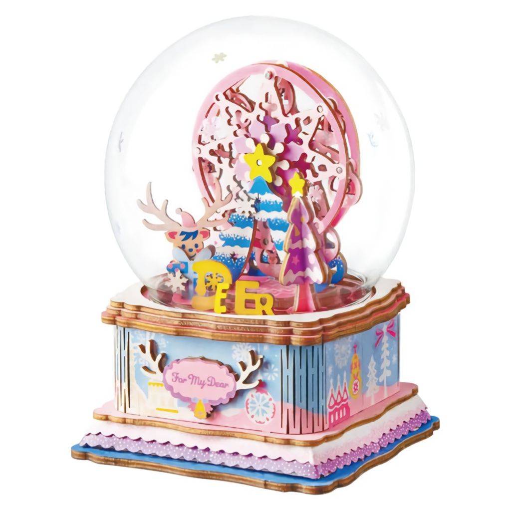 Detailní barevný model imitující tradiční sněžítko. Skládačky hracích skříněk Robotime jsou nabízeny v przeczytaj całość