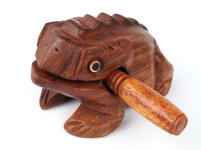 Hrající dřevěná žába světlá 14 cm II. jakost