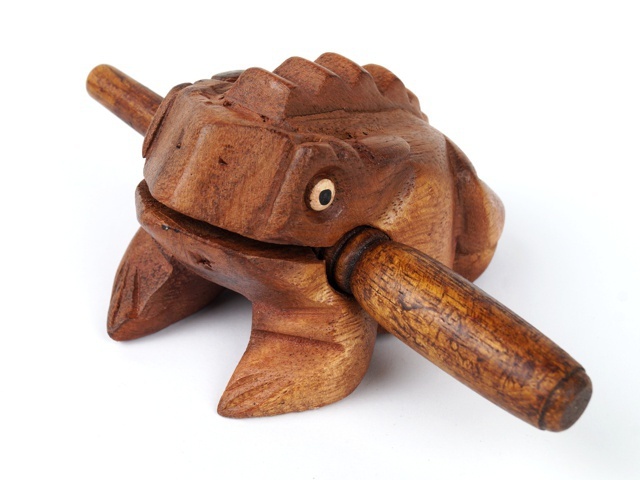 Populární thajská hudební dekorace vyrobená ekologicky ze zbytků dřeva zbylých z výroby větších dřevěných předmětů. Každý kus je rukodělný originál a proto se může od fotografie drobně lišit, jak barvou, tak i provedením. Přejížděním po výstupcích na zádech žáby docílíte originálního skřehotavého zvuku typického pro tyto roztomilé obojživelníky!