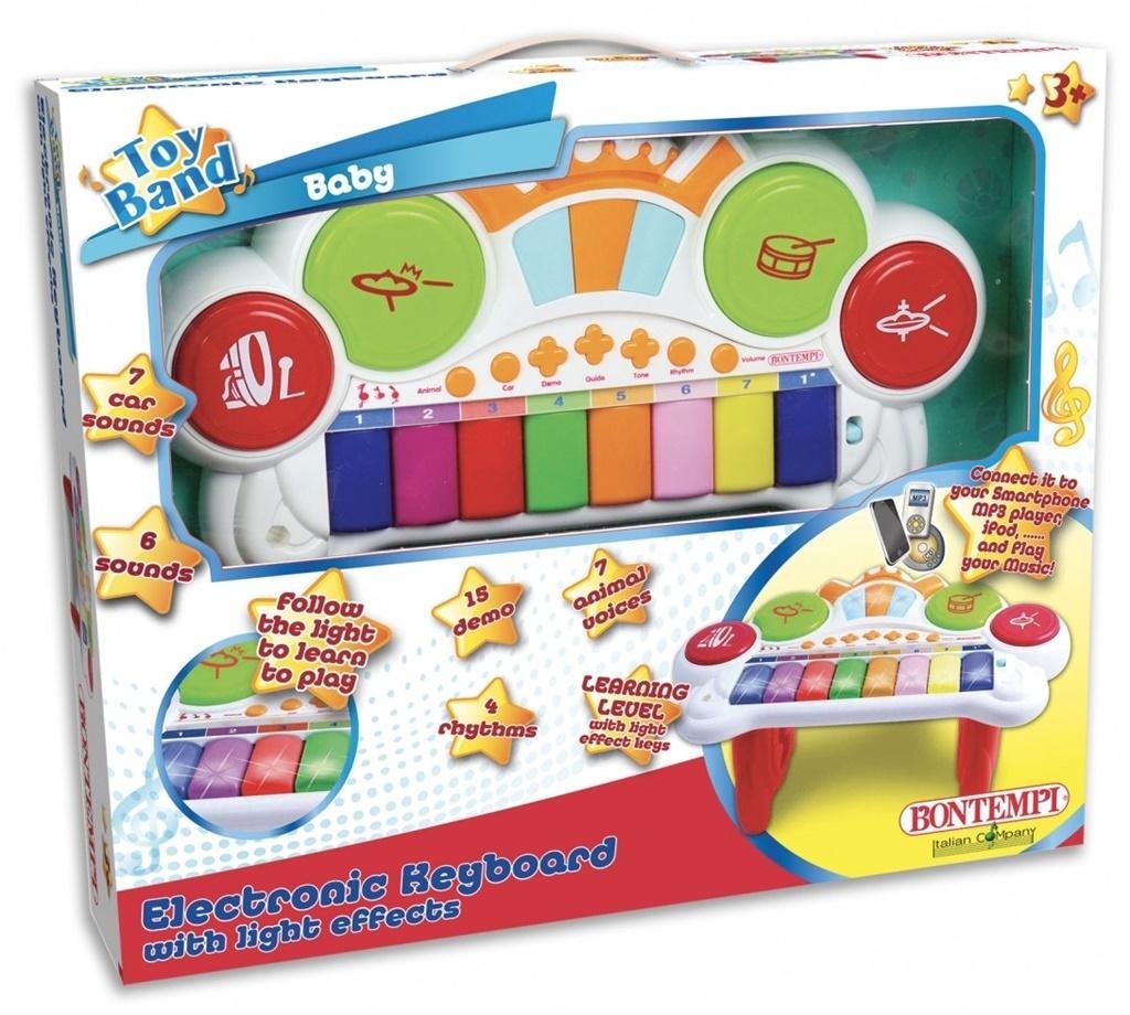 Dziecięce pianinko elektroniczne z nogami włoskiej firmy Bontempi. Zestaw pozwala na naukę grania poprzez światełka, które pokazują dziecku, który klawisz nacisnąć. Dzięki podłączeniu do odtwarzacza można puszczać inne, wybrane przez siebie melodie, dzięki czemu pianinko będzie świetnym...