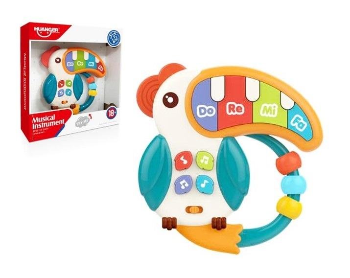 Zabawka organki tukan. Wydaje dźwięki, gra melodie, posiada także klawisze gamy: do, re, mi, fa Zabawka działa na baterie typu AAA. Baterie są załączone do zabawki. Produkt zapakowany w kartonowe opakowanie z okienkiem. Zabawka dla dzieci od 18 miesiąca życia. Podane wymiary są wymiarami... przeczytaj całość