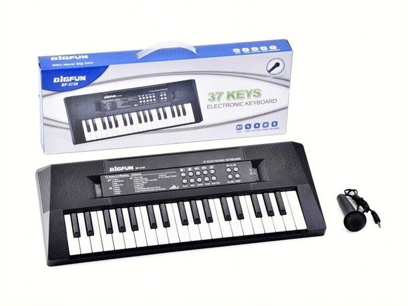 Muzyczny zestaw dla małego fana elektronicznej muzyki. Organki posiadają 37 klawiszy z całą gamą dźwięków, wgranych gotowych melodii, rytmów, tonów. W czasie tworzenia muzyki dziecko otrzymuje możliwość nagrywania melodii itp. Do organków dołączono także mikrofon. Zabawka zawiera zasilacz....