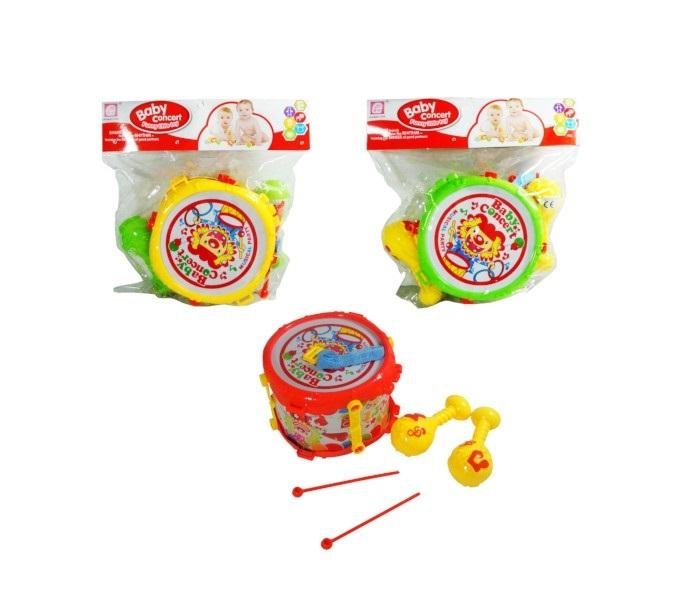 Kolorowe instrumenty muzyczne dla dzieci. Grzechotki i bębenek z pałeczkami. Produkt występuje w kilku wersjach kolorystycznych, wybierany losowo. Cena dotyczy jednej sztuki. Zabawka zapakowana w przezroczysty worek. Podane wymiary stanowią wymiar instrumentu. Zabawka dla dzieci od 3... przeczytaj całość