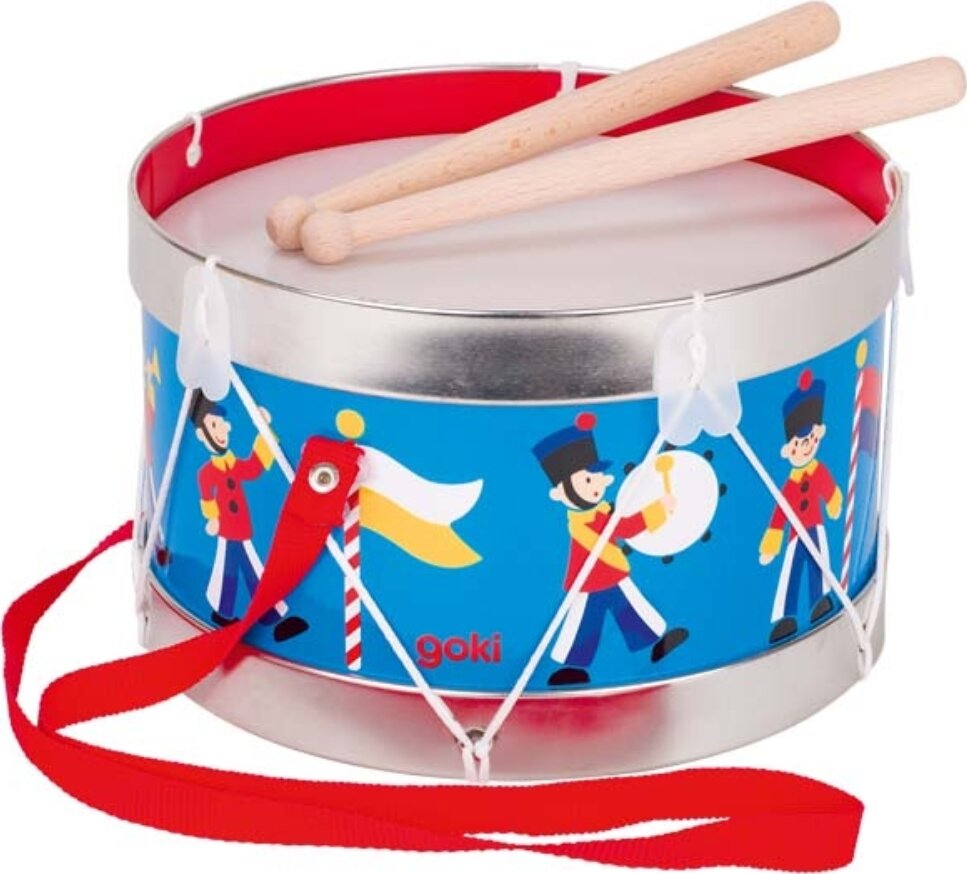 Plechový dětský bubínek s popruhem na zavěšení na tělo tak, aby bubeník mohl mít obě ruce volné. přiložené paličky jsou dřevěné trénuje sluchové vnímání rozvíjí koordinaci pohybů průměr bubínku: 22 cm GOKI patří mezi nejvýznamnější evropské výrobce hraček s vysokou pedagogickou a...