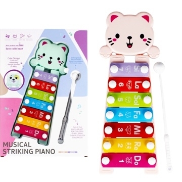 Dítě může prokázat hudební schopnosti, rozvíjí schopnost poslouchat dítě, činely mají grafiku s hlavou koťata přátelskou k dětskému oku, jsou dostupné ve dvou barevných provedeních. Obsah setu: činely, hůl. Činely vyrobené z plastu a kovu.